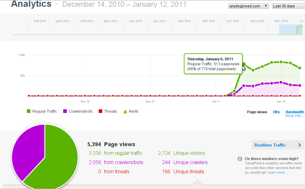 with just their free service. I have tried CloudFlare with my site anydogbreed.com and have found these numbers to be pretty accurate. They also claim that setup takes about 5 minutes and that is pretty close to how long it took me.